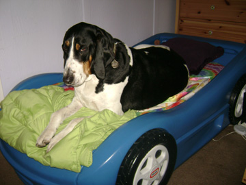 We also had the chance to spend some time in Minneapolis with our best friends, Laura and Kevin Charles and their beautiful little boys, Noah and Cole. It was such happy chaos watching all of our kids run and play together! This past fall, when Julie Cavender was in Monterey (CA) for a conference, we drove down for an evening to see her. The time was too short, but we had a chance to catch up and Sam got to meet his Auntie Julie. And finally - Sam's first big boy race car bed! Charlie enjoys it very much! (Move over hound dog!!)